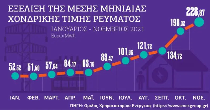 ΣΤΟ ΙΛΙΓΓΙΩΔΕΣ ΠΟΣΟΣΤΟ 438% ΑΠΟ ΤΗΝ ΑΡΧΗ ΤΟΥ ΧΡΟΝΟΥ ΕΦΤΑΣΕ ΤΟΝ ΝΟΕΜΒΡΙΟ Η ΑΥΞΗΣΗ ΤΗΣ ΜΕΣΗΣ ΜΗΝΙΑΙΑΣ ΧΟΝΔΡΙΚΗΣ ΤΙΜΗΣ ΡΕΥΜΑΤΟΣ, ΠΟΥ ΕΝΔΙΑΦΕΡΕΙ ΚΑΙ ΚΑΙΕΙ –ΚΥΡΙΟΛΕΚΤΙΚΑ– ΙΔΙΑΙΤΕΡΑ ΤΟΥΣ ΚΑΤΑΝΑΛΩΤΕΣ ΜΕ ΣΥΜΒΟΛΑΙΑ ΜΕ ΡΗΤΡΑ ΑΝΑΠΡΟΣΑΡΜΟΓΗΣ.